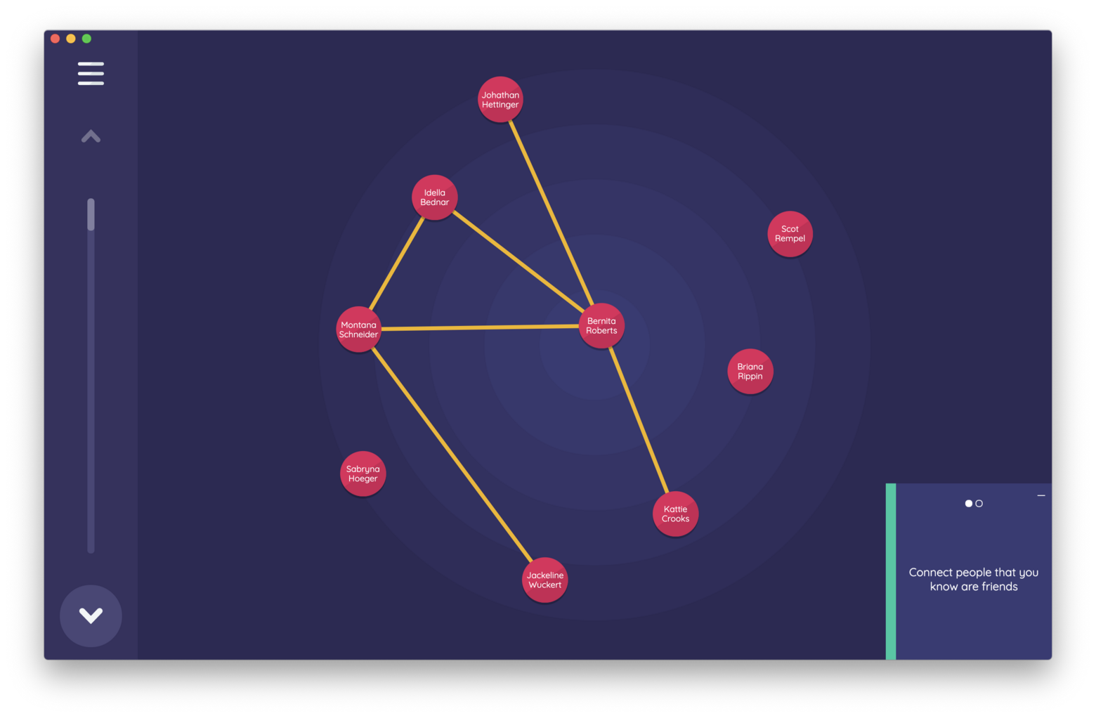 When using the "Sociogram" Interface, participants position their alters and draw ties between them. The Interface can be used to create one or multiple edge types between alters in a participant's network, and to collect alter attribute data by highlighting alters where the variable value is true.