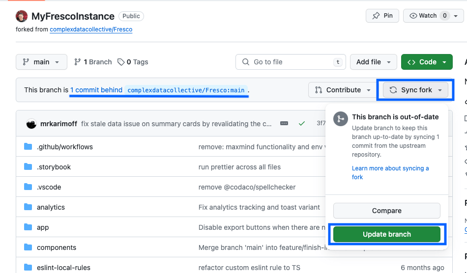 - GitHub: You can find the version of your Fresco instance on your GitHub repository, inside the