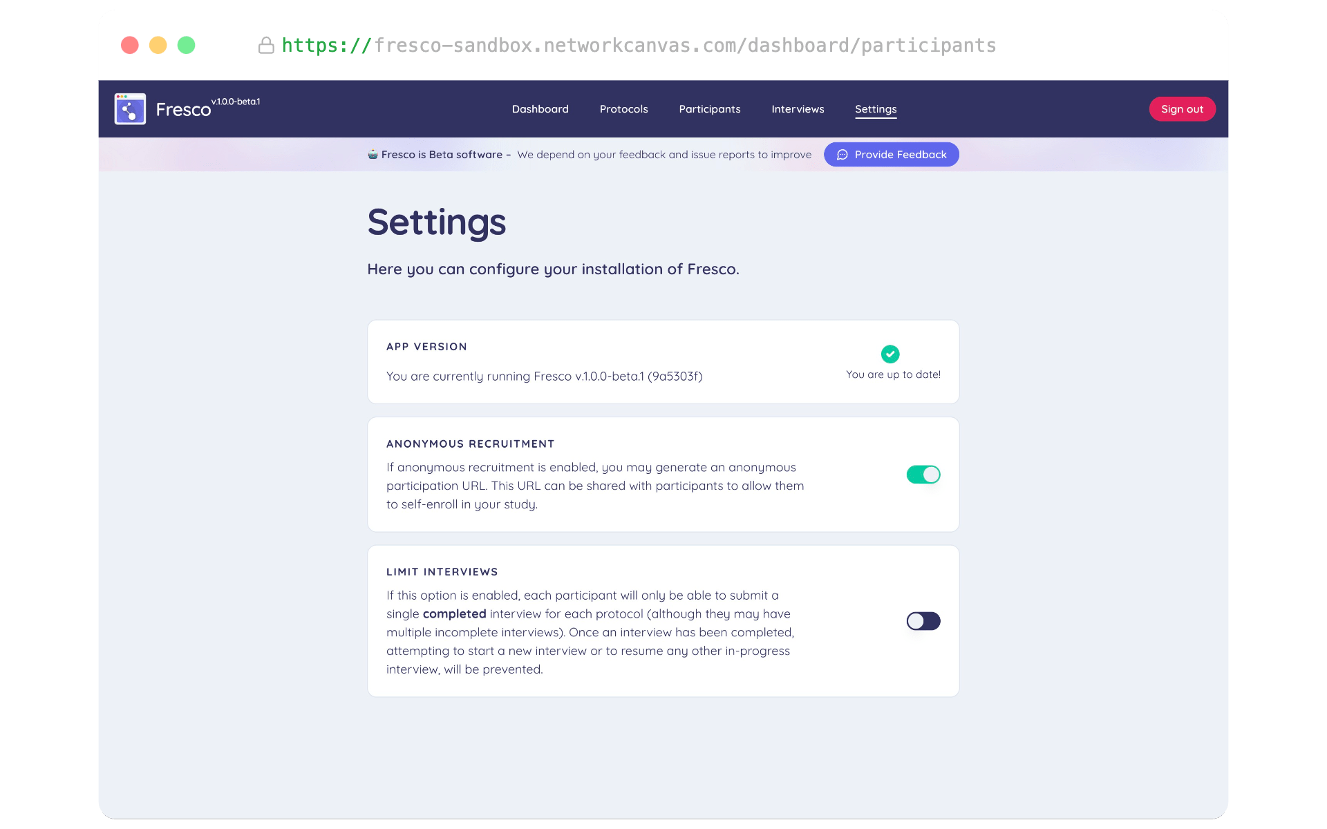 You may want to limit the number of interviews that a participant can complete for a given protocol. For this reason, Fresco includes this as an option you can enable on the settings page.